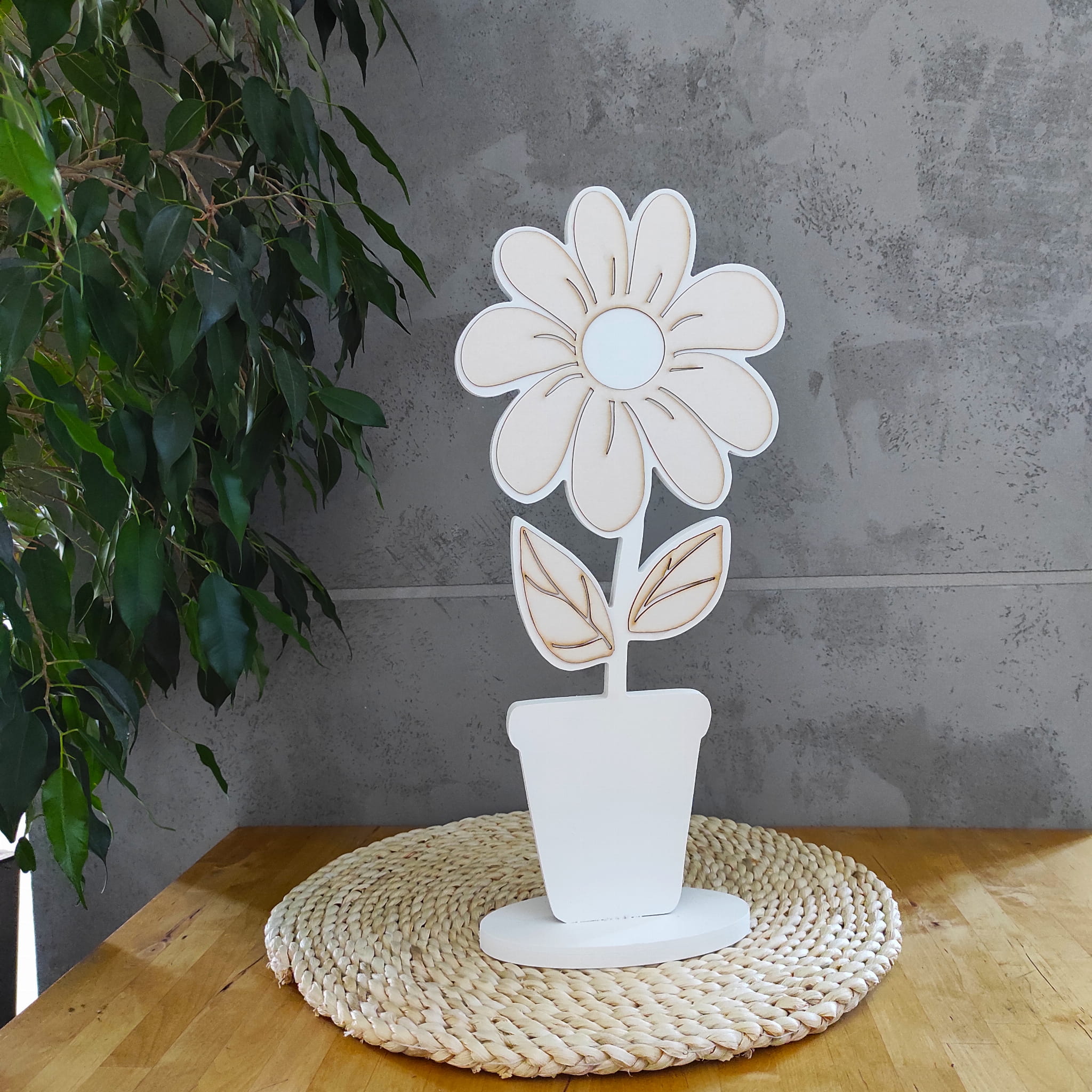 Drakaart - DEKORACJA STOJĄCA - Kwiat dekoracyjny stokrotka w doniczce 50x26 cm biały