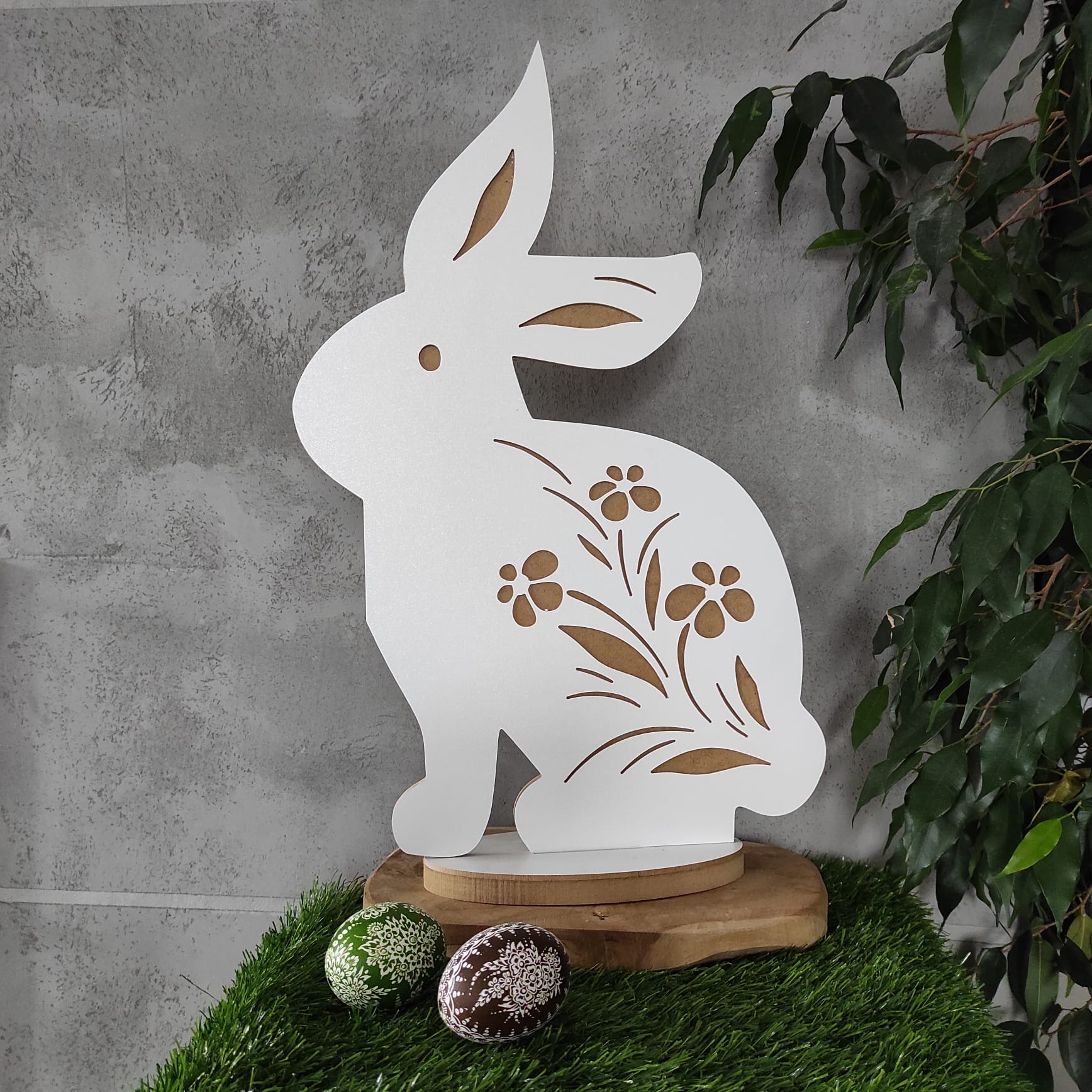 - Piękna dekoracja wielkanocna wykonana z płyty HDF - białej oraz surowej