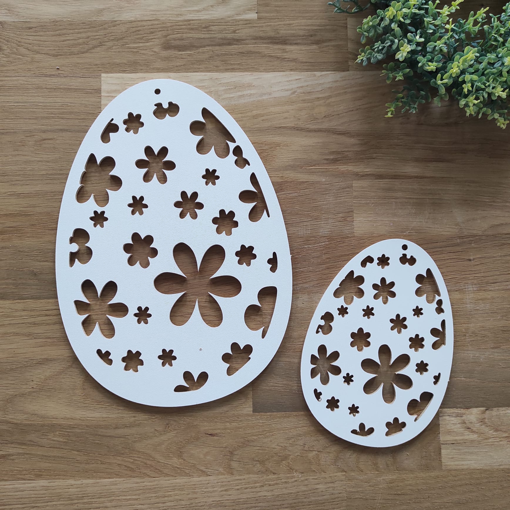 - Zawieszki wykonane z płyty HDF 3 mm malowane na biało dwustronnie