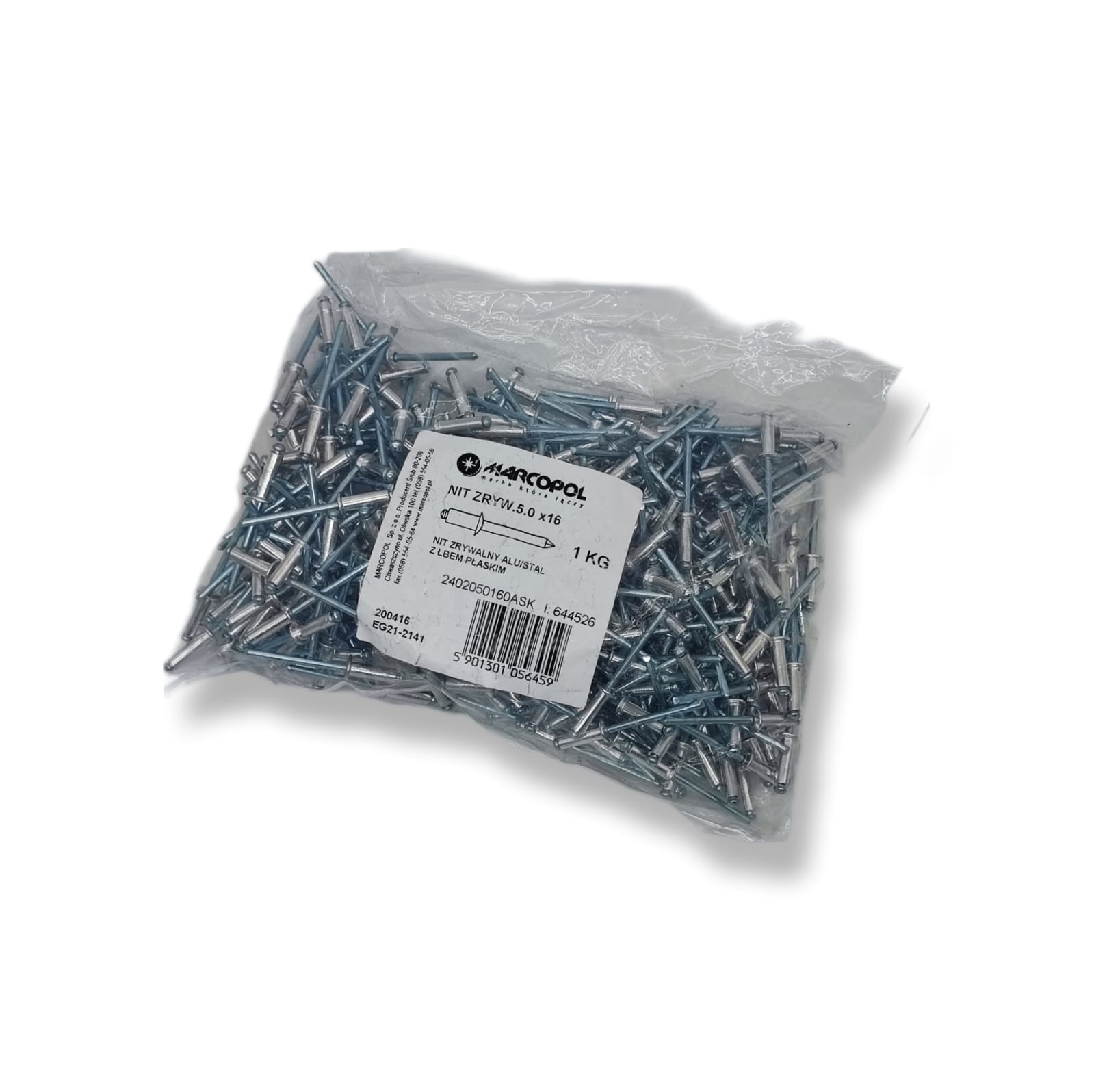 Marcopol - Q1826 - nity zrywalne ALU/STAL z łbem płaskim 5 x 16 mm op.1 kg :