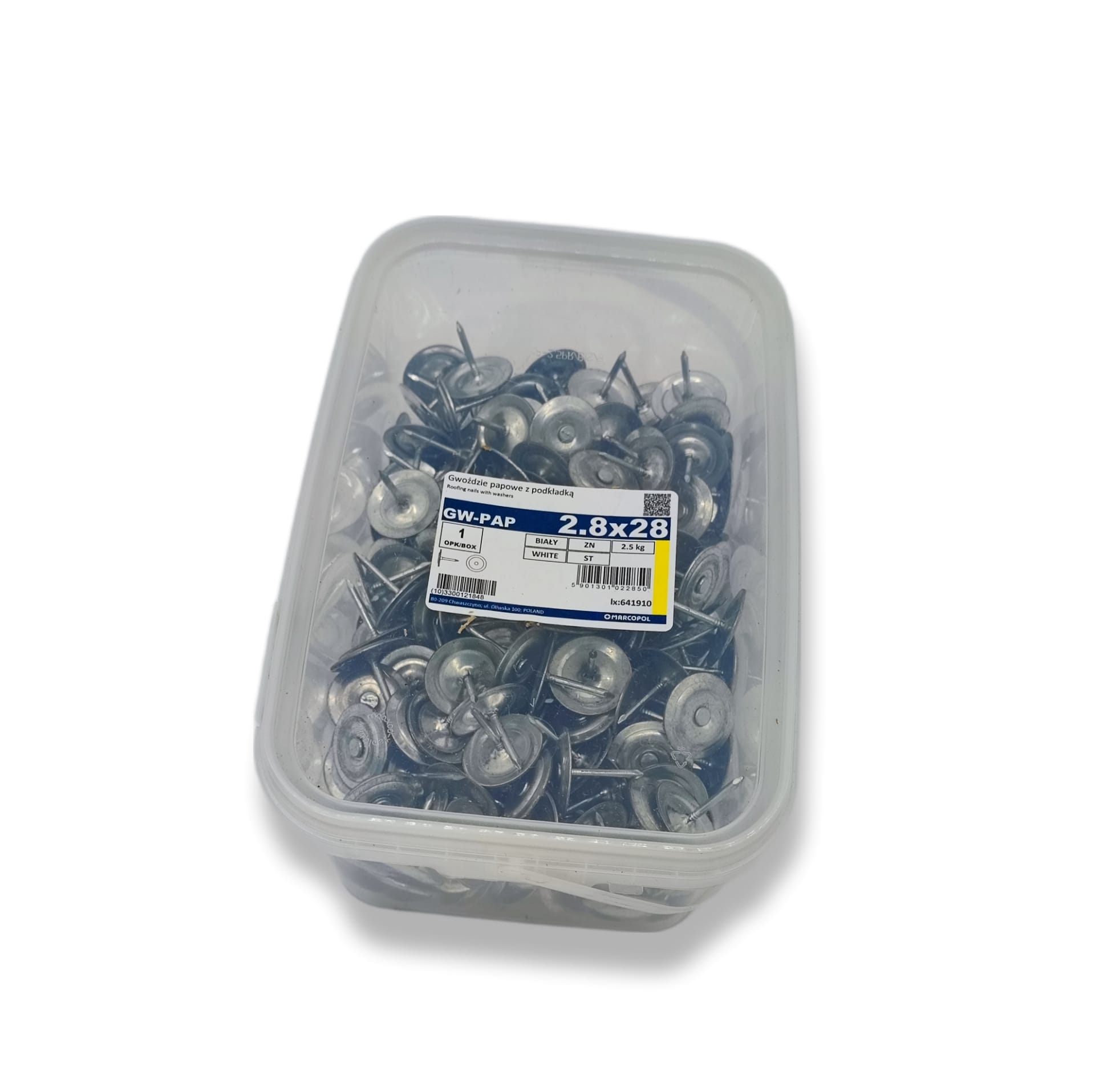 Marcopol - Q6644 - Gwóźdź papowy z podkładką 2,8 x 28 mm ocynk biały - wiaderko 2,5 kg