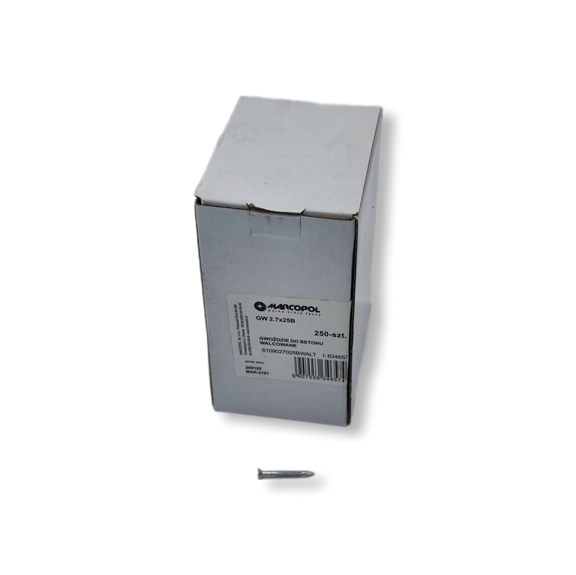 Marcopol - Q7696 - gwoździe hartowane/walcowane do betonu 2.7 x 25 mm ocynk biały op. 250 sztuk